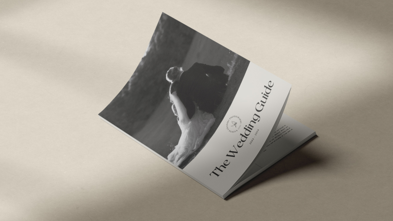A Canva-designed, pre-written, customizable 53-page Wedding Guide template for wedding photographers. Both desktop AND print versions included, as well as a client email template! (Includes original 2021 design, and updated modernized design.)